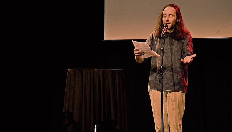 Weiter informiert Wyss-Hug über das «dichte» Tätigkeitsprogramm. In Sachen Digitalisierung bleibt der Verein nicht untätig. Die Präsidentin spricht von einer «Weiterentwicklung in allen möglichen Bereichen.» Die Website wird laufend erneuert, zudem ist der Verein auch auf Facebook präsent. Zudem haben die Buchfreunde nun auch ein Werbevideo für ihren Verein. Dieses wurde von niemand anderem als dem Oltner Buchautor und Slampoet Kilian Ziegler gedreht, der es auch gleich auf der Bühne vorstellt. Die Comedy-Einlagen des Oltners bringen das Publikum des Öfteren zum Lachen.