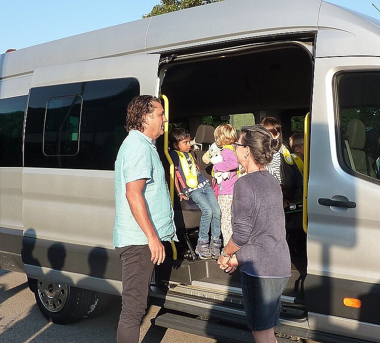 Um 7.50 Uhr steht morgens vor der Stadthalle jeweils eine kleine, fröhliche Kinderschar, die mit ihren Eltern oder Grosseltern auf ihren Bus warten. Schon nach zwei Wochen kletterten die Kin- der, kaum war der Transportdienst da, schon recht routiniert auf ihre Sitze und liessen sich beim Anschnallen helfen. In der ersten Zeit wurden sie noch von einer Kindergartenlehrerin und falls nötig auch von einem Elternteil begleitet. Rechtzeitig treffen die Kindergartenkinder im Sälischul- haus ein. Ihnen gefällt es hier, wie sie im Morgenkreis berichten. Die Busfahrten finden sie lustig und dass sie am Mittag direkt zu ihrer Kita oder wieder zur Stadthalle gebracht werden, gefällt ihnen sehr und bedeutet für die Eltern und Kitas eine willkommene Entlastung. Dies merkt man auch beim Mitfahren, beim Belauschen der regen Gespräche unter den Kindern.