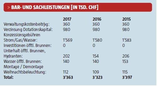 Zugunsten der Einwohnergemeinde Olten erfolgten die Bar- und Sachleistungen in obenstehender Box. Die Einwohnergemeinde kann für das Steuerjahr 2017 mit 120 Tsd. CHF Gemeindesteuern der a.en rechnen.sko